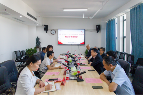 为全面助推产学研用一体化建设,形成校企合作、共谋发展的良好局面,10月24日上午,湖南知润文化产业有限公司董事长毛远忠一行应邀莅临伟德国际1946共商校企合作事宜。伟德国际1946经理陈明、党委副书记胡英、副经理王竹苗、副经理胡慧娥参加了座谈会,座谈会由胡英主持。