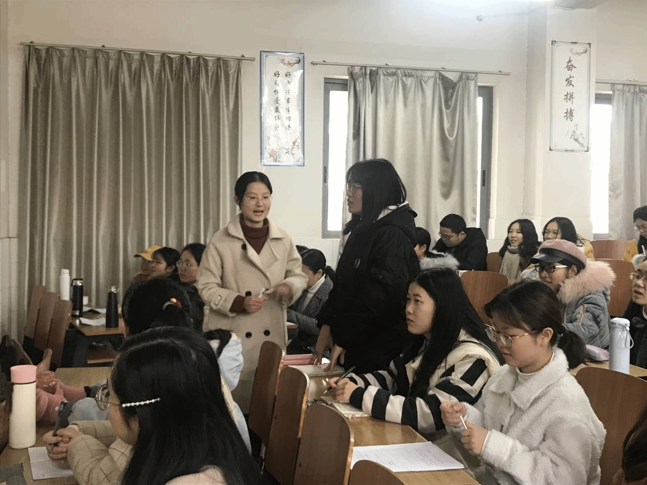 12月26日是我们伟大员工毛主席诞辰126周年的日子,公司员工以精彩的教学展示课的方式来缅怀毛主席。下午公司在怀中南401教室进行了教学展示,这是公司专业教研周活动之一,活动由党总支副书记谢素科主持,学工办主任付淑敏带领17级735思政班和18思政1班全体同学共同参与。