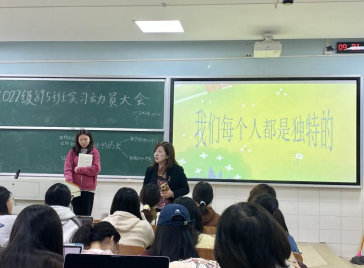 吴红老师鼓励同学们要积极主动参与实习,用心感受教育的美好与责任,以谦虚的态度努力提升专业技能、积累教学经验,不断将理论知识与实践锻炼相结合,为未来的教育事业奠定坚实基础。通过此次动员大会,同学们对为期一个月的实习工作点燃了信心,纷纷表示将以认真负责的态度投入到实习工作中去,展现一师学子的良好风貌。895班汤雅哲同学表示:“我将把在磨课过程中的所思所悟运用到今后的教学实践中去,争取把每节课讲成优质课。”