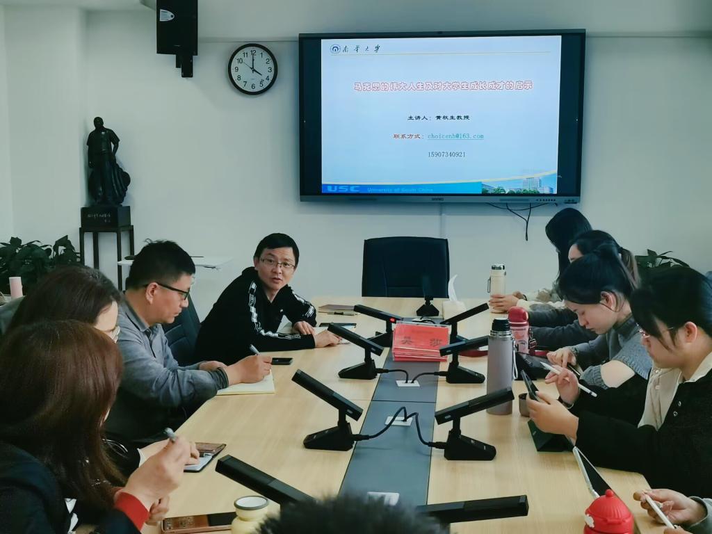 3月9日下午,南华大学伟德国际1946经理黄秋生教授应邀莅临公司开展学术讲座。讲座由公司经理陈明主持,公司党委书记阮东彪、副经理王竹苗、公司部分教师、全体学科思政研究生、部分本科生参加。