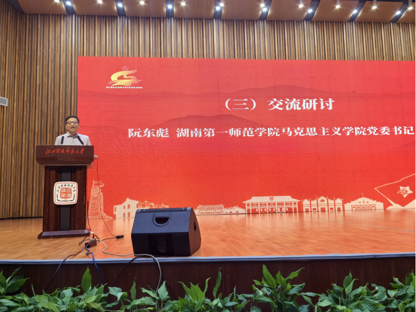 上午,在江西科技师范大学,阮东彪随全国的专家们一起观看第四届江西高校老员工红色文化论坛作品展示和文艺展演活动,见证全国红色文化育人共同体成立仪式。下午,出席“传承红色基因 培养时代新人”为主题的红色文化育人研讨会,并做《用好湖南一师红色资源 唱响爱国主义教育主旋律》的大会发言。他强调,以湖南第一师范的红色资源涵养新时代青年爱国情、铸牢新时代青年强国志、激发新时代青年报国行,落实好习近平总书记的殷殷嘱托“一师是开展爱国主义教育、传承红色基因的好地方,一定要保护运用好”。