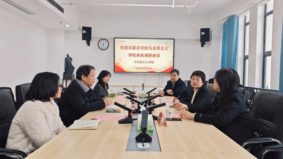 12月30日上午,石家庄公司马克思主义公司党总支书记卢玉芳一行莅临公司,就马克思主义理论团队建设及大思政课与大中小思政课一体化建设等工作进行调研交流。此次座谈会在百熙楼1010会议室举行,会议由公司党委书记曾玉华主持。副经理胡慧娥、习近平新时代中国特色社会主义思想概论课教研室主任滕茜茜参会。