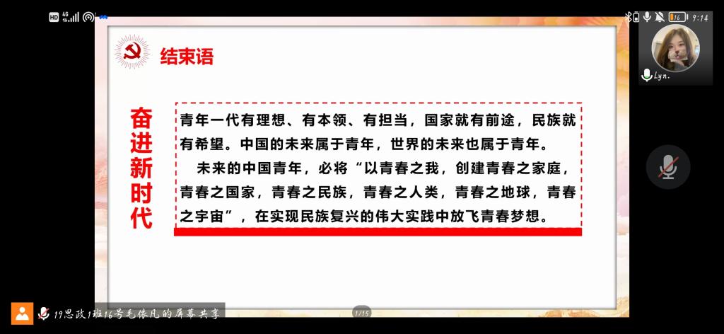 简单概括白皮书的主要内容后,刘老师着重从新时代中国青年胸怀世界、展现担当这一方面入手,以自己的社会经历和观察感悟总结了近年来青年在社会中的责任担当具体表现为:更加开放自信地融入世界,展现构建人类命运共同体的青春担当,中国青年的全球行动倡议。