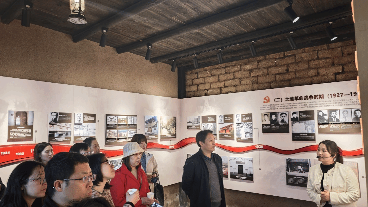 当天下午,教职工们来到望城茶亭镇中共湖南省委旧址。在讲解员的指引下,全体党员重温革命时期中共湖南省委迁移望城,革命先辈们不畏艰难、不惧牺牲为建立新中国不懈奋斗的光辉历史。这座承载着革命烽火的土砖建筑内,泛黄的历史照片、斑驳的革命文物重现了中共湖南省委在艰苦岁月中领导人民开展斗争的壮阔历程。教职工们驻足聆听革命先辈的英勇事迹,重温入党誓词,感悟初心使命。时光飞逝,历史已被浓缩,在旧址中,我们了解到革命先辈忠于信仰和事业,将个人生死置之度外,英勇无畏、前仆后继,“甘愿为党献头颅”,在长期艰苦的革命斗争实践中,“曾任中共湖南省(工)委书记的郭亮、林蔚、彭公达、王一飞、贺昌、杨福涛、蒋长卿、徐少保等十余人英勇牺牲;曾任中共湖南省委委员的何叔衡、缪伯英、周炳文、柳直荀、周以栗等40余人英勇牺牲,其他为省委工作过的牺牲干部更是难以计数。”他们用自己的实际行动践诺入党时的铮铮誓言,为民族独立和人民解放,奉献了自己的青春和生命,流尽最后一滴血,形成了中国共产党湖南省委机关革命烈士群体。随后,在旧址旁会议室,公司党委书记曾玉华给参与活动的教职工讲了一堂微党课,深入交流革命先辈“坚定信念、艰苦奋斗、依靠群众”的精神内核