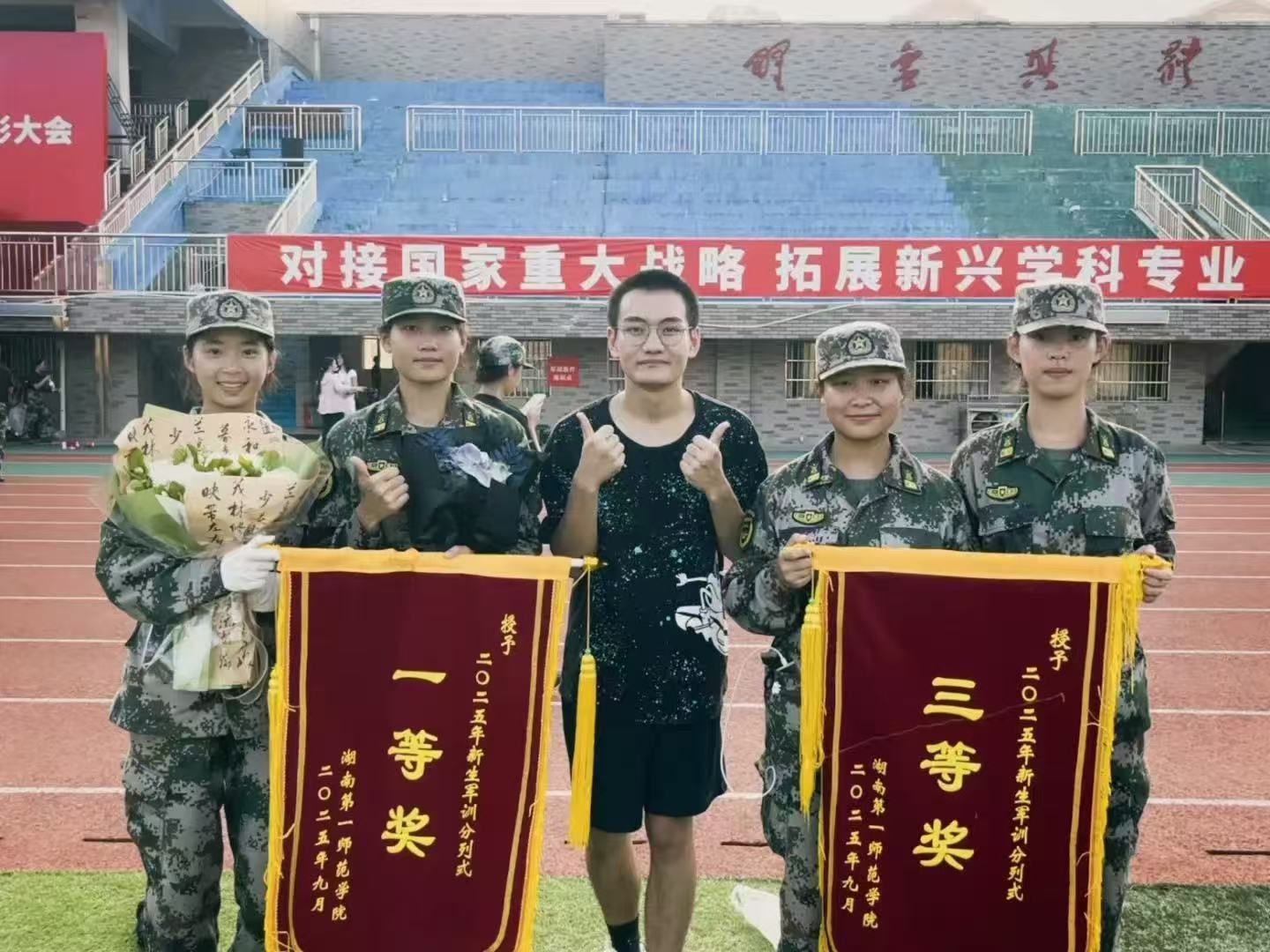 金秋九月,迷彩飞扬,稻浪翻滚,硕果盈满。9月28日下午,伟德国际1946在田径场隆重举行2025级新生开学典礼暨军训总结表彰大会。各公司新生连队怀揣着激情与斗志依次进行分列式汇演,以昂扬姿态接受检阅。其中,伟德国际1946一连与二连凭借精准规范、整齐划一的队列动作与出色表现,分获分列式展示一等奖第一名与三等奖,展现了公司学子良好的精神风貌与卓越的集体凝聚力,为军训收官画上圆满句号。