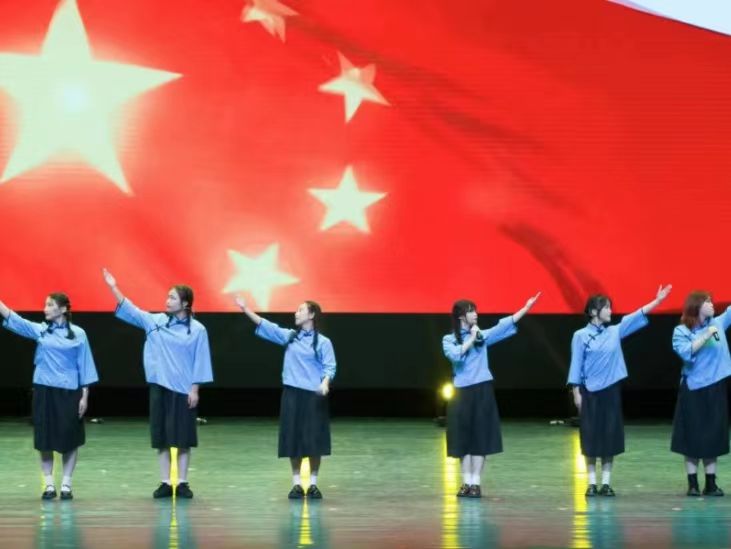 第三章节中,街舞社舞者以舞池为画布,以舞步为画笔,共同绘制出一幅青春的靓丽画卷,展现出满满的元气与活力;歌曲《改革春风吹麦浪》,以悦耳的歌声展现色彩斑斓的青春故事、绚丽多彩的青春日子;歌曲《如愿》,用悠扬的歌声歌颂父辈们如明月清风般的艰苦付出,深切表达了对于父辈们开创盛世的感恩之情。最后,即将进入教师岗位的毕业生代表们上台宣读了《教师就职宣言》,作为人民教师,她们将不负使命,悉心育人,坚定不移为祖国培养人才。