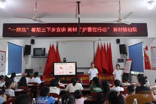 理论宣讲活动包括主题宣讲和艺术化宣讲,内容充实、讲演结合、安排紧凑。宣讲团成员从“办好人民满意的教育”“推动绿色发展,建设美丽中国”“奋进新时代,争做新青年”以及“保护和关爱未成年人健康成长”四个主题分别展开宣讲,向村民普及党的创新理论、宣传党的二十大精神。主持人在主题宣讲环节中穿插知识竞答,采取有奖问答方式,不断活跃现场气氛,“润物细无声”地将党的创新理论送到人民群众心坎上。宣讲团成员还通过演绎原创剧目《修身·起航》,运用情景剧的形式再现杨昌济的修身立志课堂和青年们组建新民学会的场景;讲述《毛家三兄弟》和《最后一页日历》等红色故事,带领听众们穿越百年历史风云,从党的光辉历史中汲取新征程上砥砺前行的精神动力;诵读爱国诗篇《中国,我相信》,抒发对祖国的期盼与热爱,声音慷慨激扬、个个感情真挚,获得了阵阵掌声。