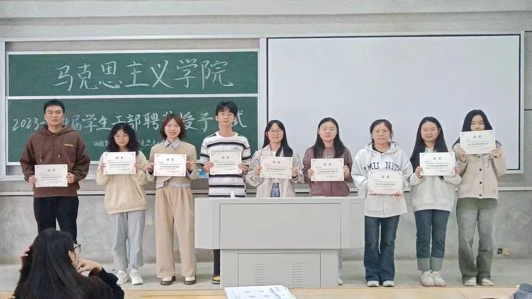 拿到聘书以后,宣传部副部长杨优璇激动地表示:“能够得到公司领导的认可、得到同学们的信任,我非常激动、非常开心。我深知这一纸聘书的“重量”,我会进一步加强学习,带好宣传干部这支队伍,以新闻采写为重点,创新工作方法,丰富宣传手段,一心讲好马院故事。”