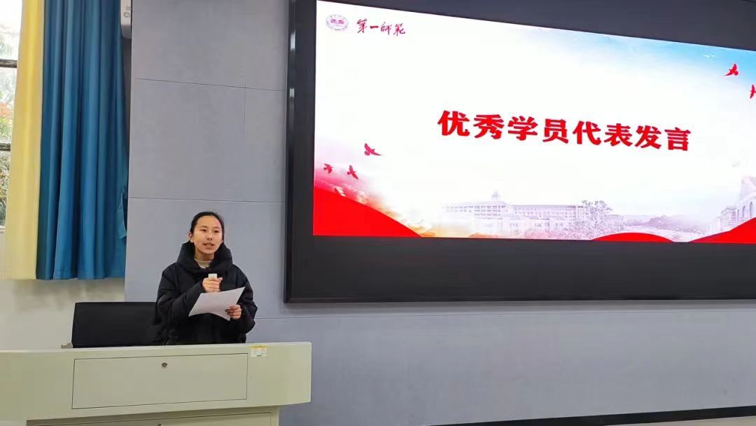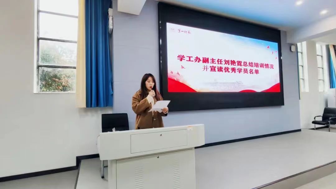 随后,刘老师总结培训情况并宣读优秀学员名单,对学员们在培训中表现出来闪光之处给予表扬,鼓励同学们继续努力,争做有理想、敢担当、能吃苦、肯奋斗的新时代青年,为建设“四个一师”贡献青春力量!