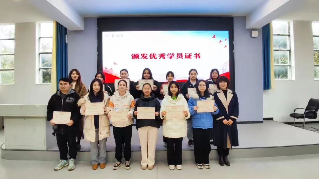 接着,胡书记和刘老师为12名优秀学员颁发证书并合影留念。最后,杨荣同学作为优秀学员代表发言,她说将以“青马工程”培训作为新起点,刻苦学习,练就本领,以实际行动服务同学,争取早日成为名副其实的新时代青年马克思主义者。