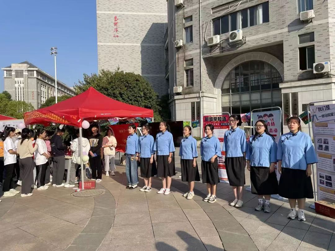 在展览期间,公司推出了一系列优秀节目吸引广大师生前来观看,如朗诵节目《青春中国》、情景剧《何叔衡》、合唱节目《明天会更好》等。其中情景剧《何叔衡》是公司在宁乡市黄材镇的三下乡社会实践过程中的原创作品,向我们展示了革命烈士何叔衡“三十七岁仍立志求学,”参与“中共一大召开”等一系列革命活动,该剧集思想性、艺术性、观赏性和现实教育性于一体,弘扬了公司杰出员工何叔衡先生有志不在年高、求学进取、敢于斗争、以身为党的精神。展览过程中,志愿者们耐心讲解与同学们认真聆听的画面形成一道亲切靓丽的风景线;“你画我猜”、“正话反说”等游戏为成果展增添了无限乐趣,盛况空前。22思政1班胡芬同学在现场表示:“公司三下乡成果展示不仅活动形式生动有趣,展示内容也全面深刻,它激励着我们要在积极投入为社会服务的实践中增强个人本领,奋进成为能够担当民族复兴大任的时代新人!”公司三下乡活动工作人员蒋林桃说:“作为一名三下乡成果展示活动的工作人员,身处其中,我深刻地感受到同学们在参与游戏时发自心底的最纯真的快乐。看到参与三下乡活动的学长学姐们与小朋友们的相片与录像时,我对教育事业的尊敬与向往油然而生。”