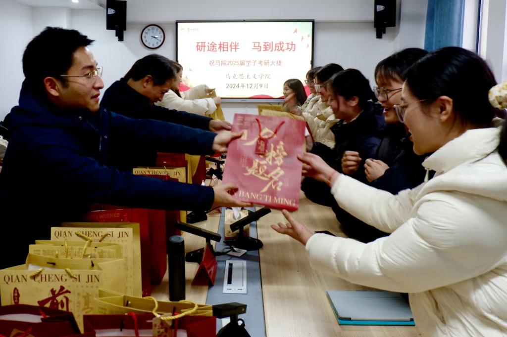 最后,老师们亲手将满载着公司关怀与期望的考研祝福礼包送给了在场的每一位考研学子。胡英书记满怀激情地寄语道:“风好正扬帆,奋进正当时。愿你们带着公司的祝福与期望,在考研的舞台上绽放光芒、斩获佳绩!”