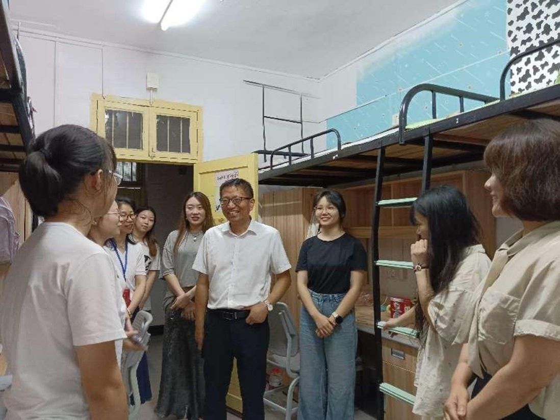9月7日下午5点,马克思主义公司党委书记阮东彪,副书记胡英,副经理胡慧娥带领辅导员深入员工宿舍走访。在走访过程中,公司领导亲切询问了新生的住宿条件、入学感想以及初入校园的适应情况,鼓励同学们加强交流、尽快融入新的集体,共同打造文明公寓,同时重点强调个人生命安全、财产安全、用电安全。并激励同学们树立远大理想,不懈怠不退缩,提高个人综合素质,以目标为灯,驶向成功彼岸。( 一审:刘艳霓 二审:胡英 三审:曾玉华)