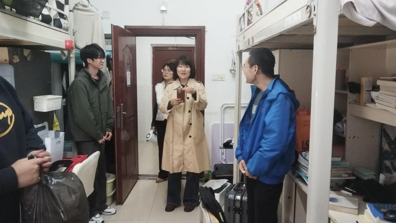 10月23日上午,马克思主义公司党委书记曾玉华、党委副书记胡英与辅导员高爱枝一行,走进男生寝室开展实地视察工作。领导老师们细致检查了寝室卫生状况,重点关注内务整理、环境整洁度等细节,对整洁规范的寝室给予肯定,同时针对部分需要改进的地方提出具体建议。在与同学们的交流中,老师们亲切询问大家近期的学习进度、课程掌握情况,以及生活中的困难与需求,耐心倾听学子心声,叮嘱大家要保持良好的作息习惯,注重寝室团结,营造安全、整洁、和谐的住宿环境,以饱满的状态投入到学习与生活中。