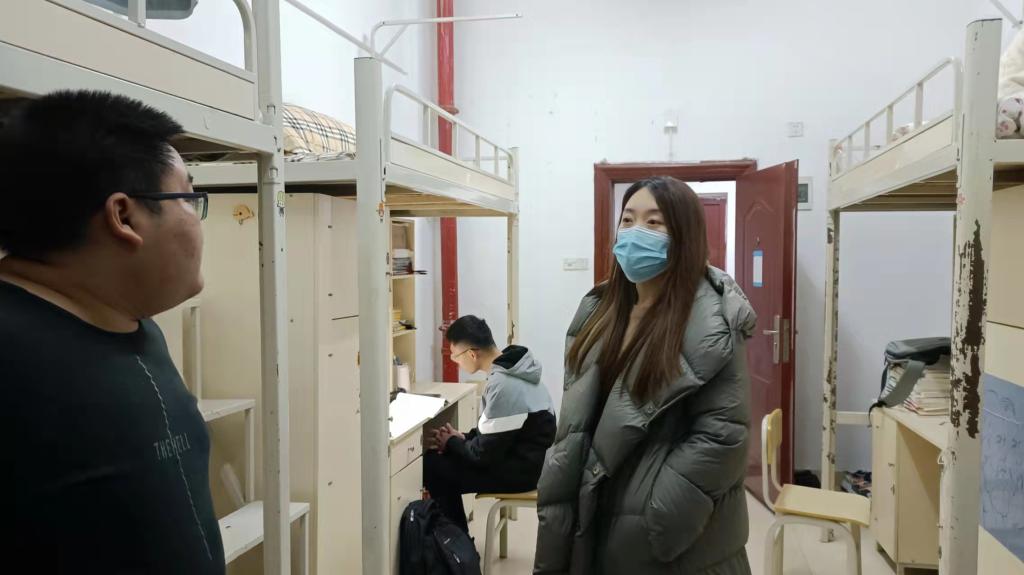 3月21日晚,伟德国际1946辅导员刘艳霓走访了女生寝室11栋和男生寝室15、16栋,检查寝室卫生情况,了解员工学习生活情况,督促同学们认真备考四六级,同时了解同学们的心理状况,及时疏导。最后要求同学们严格遵守公司疫情防控政策要求,寝室每天通风,保持整洁,并且要及时做好消杀工作。