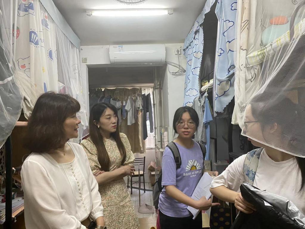 6月2日下午,马克思主义公司党委副书记胡英带领辅导员刘艳霓来到11栋员工寝室看望端午假期留校同学,叮嘱同学们留校期间要遵章守纪,按时作息,保持寝室卫生,注意防火安全、用电安全和自身安全,抓紧时间做好期末复习,同时祝同学们假期愉快。