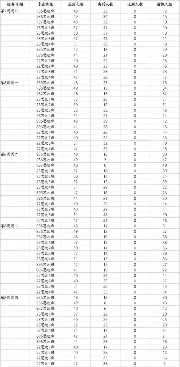 马院第八周早自习检查情况