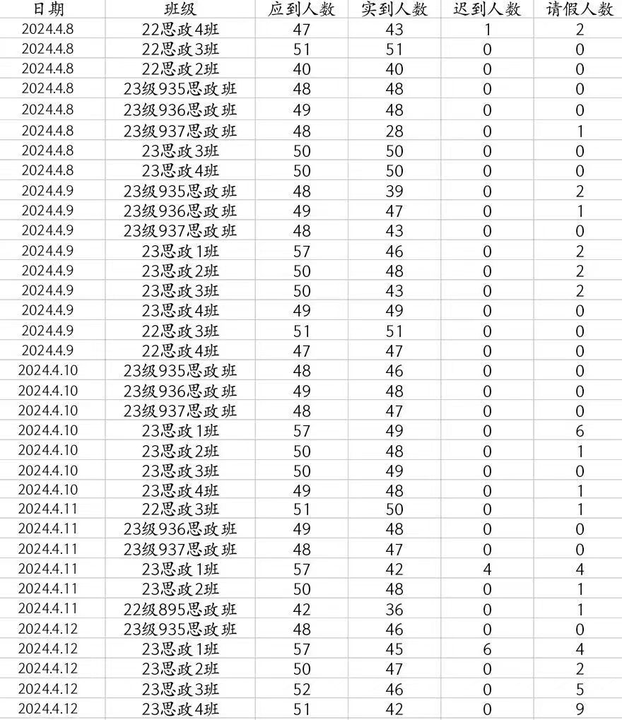 2、23级935、936、937思政班手机上交率低。