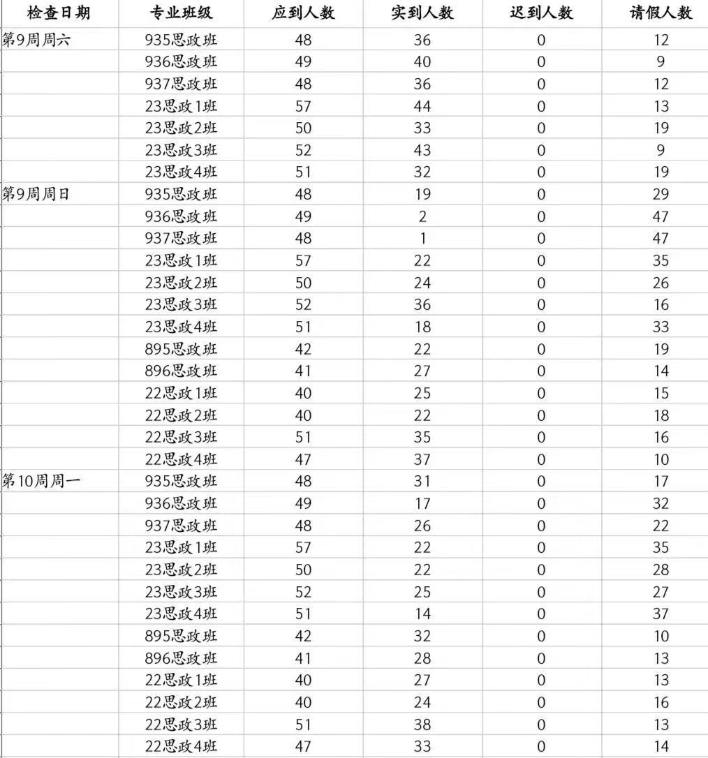 马院第十周早自习检查情况