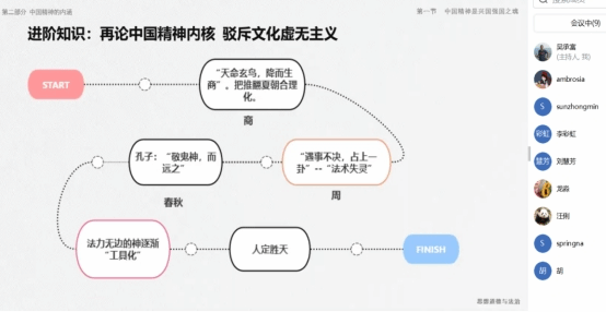 教师创新大赛选手肖彦,展示了她准备的《中国精神是兴国强国之魂》备课成果。肖彦重点阐述了崇尚精神是中华民族的优良传统,中国精神的丰富内涵,中国共产党是中国精神的忠实继承者和坚定弘扬者,实现中国梦必须弘扬中国精神。大家认为,展示选题紧扣教材要求,教学中以问题链为导向,循循善诱,引导员工对理论的思考和探索,讲授内容新颖,结合青年老员工关注的热点,激发员工兴趣。最后,大家对进一步完善教学内容和教学设计等方面进行了交流。